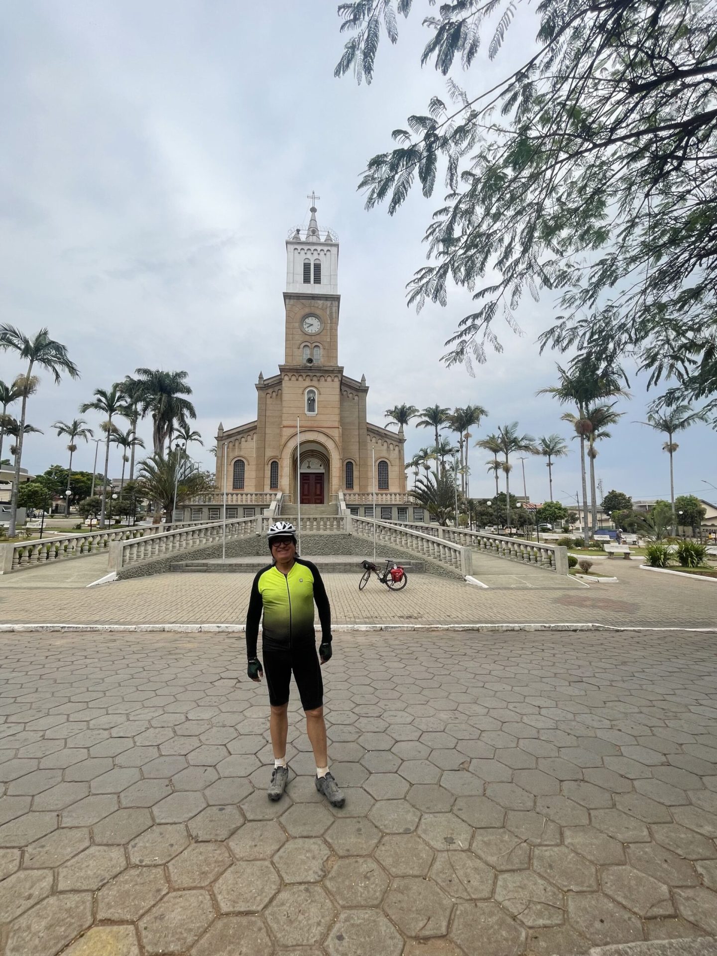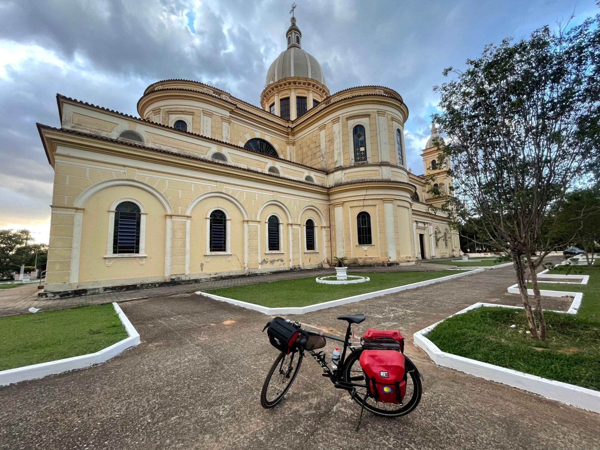 Fui visitar a cidade, retornando ao Santuário Nossa Senhora do Desterro, onde carimbei a minha credencial e visitei o lindo interior da igreja; na saída, encontrei três ciclistas de Santa Cruz das Palmeiras – Edson, Cristiane, Andrea –, que queriam saber do meu próximo destino. Contei sobre o planejamento desta viagem e de outras experiências de vida em cima de uma bike, registramos esse momento e me despedi, porque eu precisava seguir em frente, pretendia passar por Itobi e dormir em Vargem Grande do Sul.