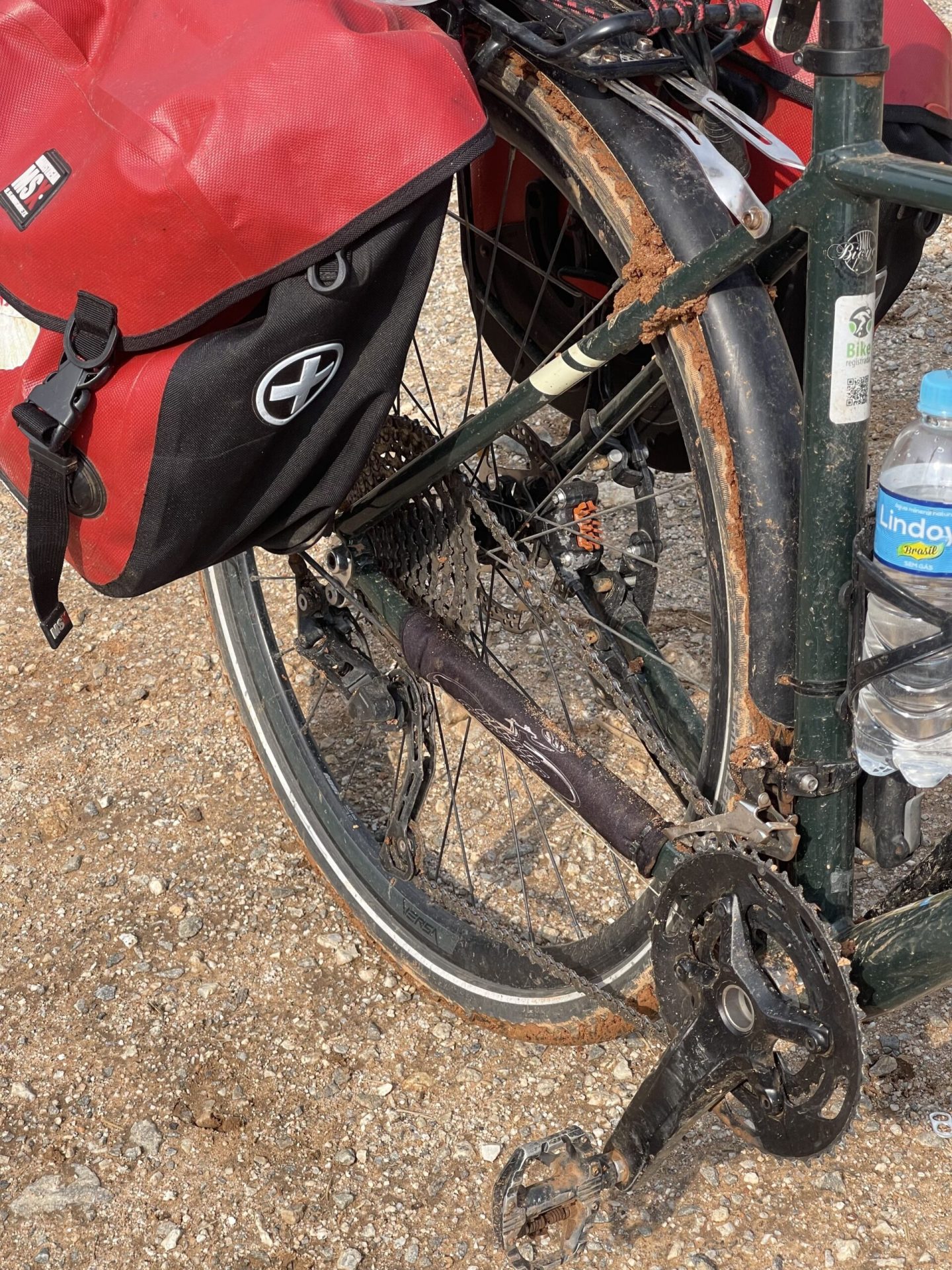 Deixando a Borda do Campo, depois do Km 214, realmente chegou a hora de enfrentar o barro solto aplainado pela máquina, que virou um barro após a chuva, então, chegou a hora de empurrar a bike completa com os alforjes até Palmas, e felizmente sem chuva.